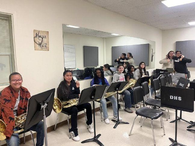 Last week, some Denison High School band students volunteered to work with some Scott Middle School beginner band students to help them get prepared for Solo Contest. The new musician's first Solo Contest will be held on Jan. 31. Photo Credit: courtesy photo