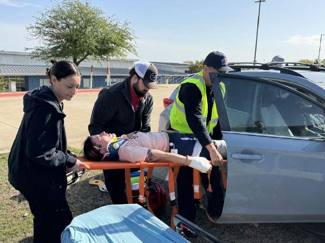 To ensure consistency and quality in communication, students followed the North Central Texas Trauma Regional Advisory Council (NCTTRAC) EMS Timeout and Handoff Protocol—a regional best-practice tool used across North Central Texas. EMT students also played the role of patients, adding a layer of authenticity to the learning experience.