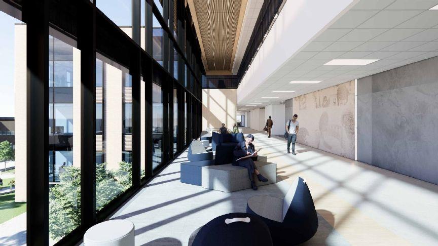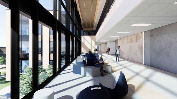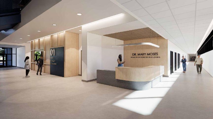 Grayson College recently released renderings of the new Dr. Mary Moses Health Sciences Building at the station.The building is part of a $456 million ten-year project that includes addition of several new buildings to the campus."Designed to support the colleges thriving healthcare programs, this state-of-the-art facility will serve as a focal point for education and campus connectivity," the release said. "Strategically positioned at the campus's new center, the four-story building emphasizes healthcare education while fostering community engagement through public-facing spaces and a vibrant new campus quad. The design thoughtfully integrates existing and future campus aesthetics, blending familiar materials with new elements for a cohesive yet forward-looking vision." Photo Credit: Evan Murta / courtesy rendering