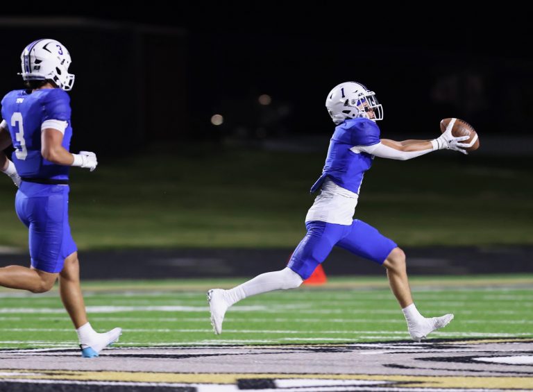 Gunter's Brock Boddie comes up with an interception during the Tigers' win against Trinity Leadership Cedar Hill in a 3A Division II Region II bi-district game. Renee Marler / Herald Democrat