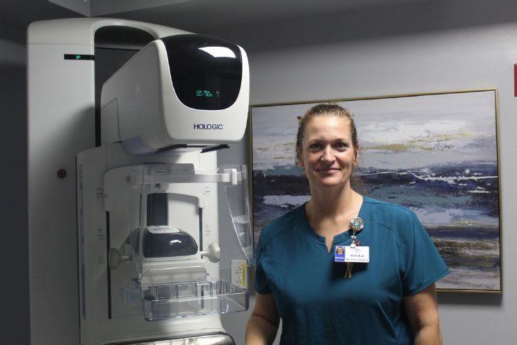 AHS Sherman Medical Center's Women's Imaging Center Manager Rebekah Clement stands in front of the site's new mammography machine. Photo Credit: Future Brown / Herald Democrat