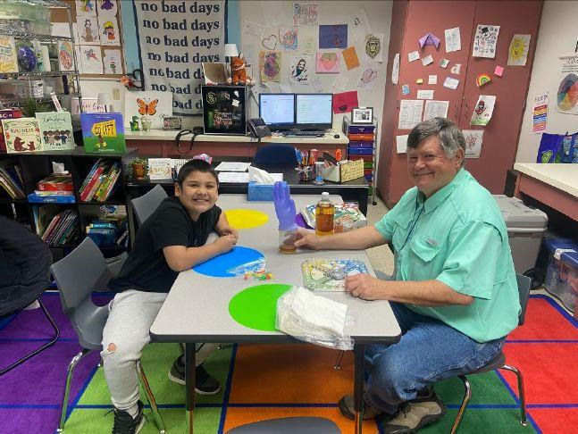 Frank McCarthy is starting his third year as a mentor at Dillingham Elementary in Sherman. He enjoys reading, games and science experiments with his paired student. Photo Credit: courtesy photo / SISD