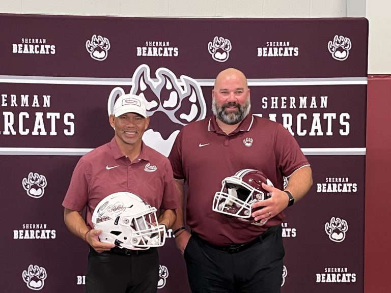 Home Sports Sherman names alum Aleman as head football coach Sherman names alum Aleman as head football coachMay 19, 2023Sports Sherman athletic director Jeff Cordell, left, introduces SHS alum Josh Aleman as the new head football coach. By Jason Della Rosa, Herald Democrat Josh Aleman grew up being a Bearcat. He was an assistant with the football program twice. And now the… Login to continue reading Login Sign up for complimentary access Sign Up Now Close Previous Post Grayson softball gets No. 6 seed for NJCAA World Series Next Post Diamond Roundup — Whitesboro softball, Collinsville baseball advance Featured Local Savings -