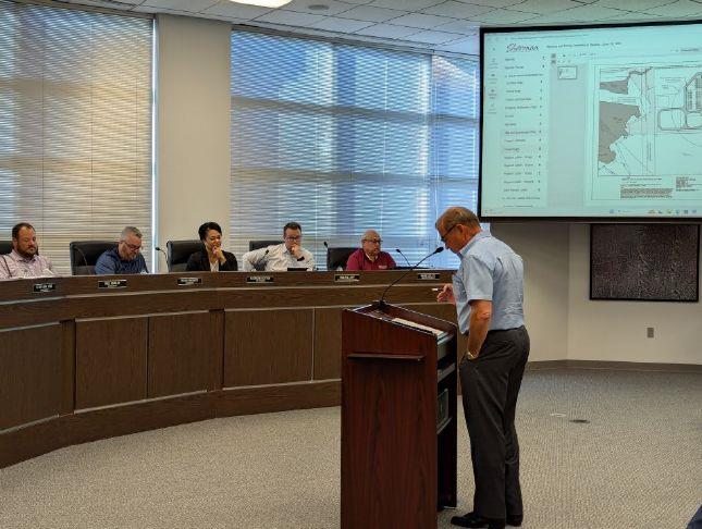 Bill Magers speaks on a proposed battery energy facility along Interurban Parkway. Photo Credit: Michael Hutchins / Herald Democrat