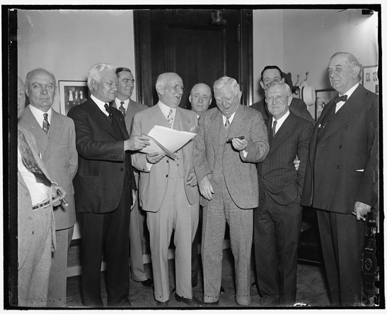 Rep. Hatton Summers; Rep. Albert Thomas; Capt. J.W. Flanagan; Rep. Sam Rayburn; Vice. Pres. Garner; Sen. Morris Sheppard; Sen. Tom Connolly. WikiMedia Commons