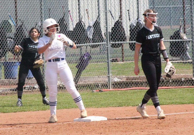 Van Astyne's Callie Hunter reaches third on a triple during the Lady Panthers' loss against Frisco Panther Creek in 11-4A play. Jason Della Rosa / Herald Democrat